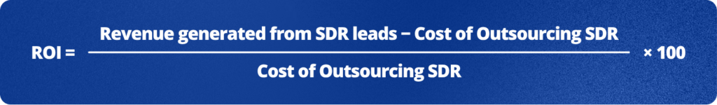The formula for calculating ROI from SDR outsourcing is as follows:
